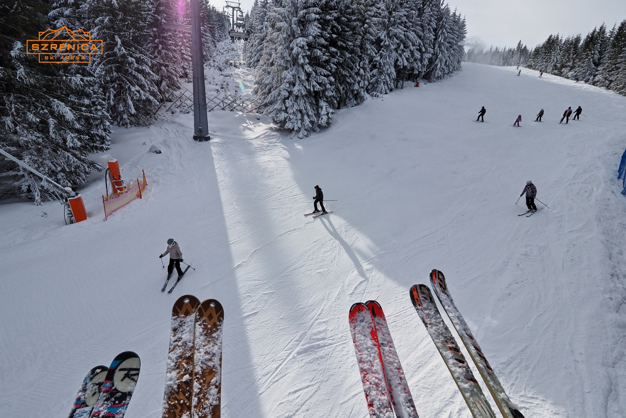 W rejonie Szrenicy trzyma lekki mróz, co sprzyja utrzymaniu pokrywy śnieżnej. W dolnych partiach temperatura jest dodatnia, dlatego przygotujcie się na zmienne warunki podczas zjazdu.
